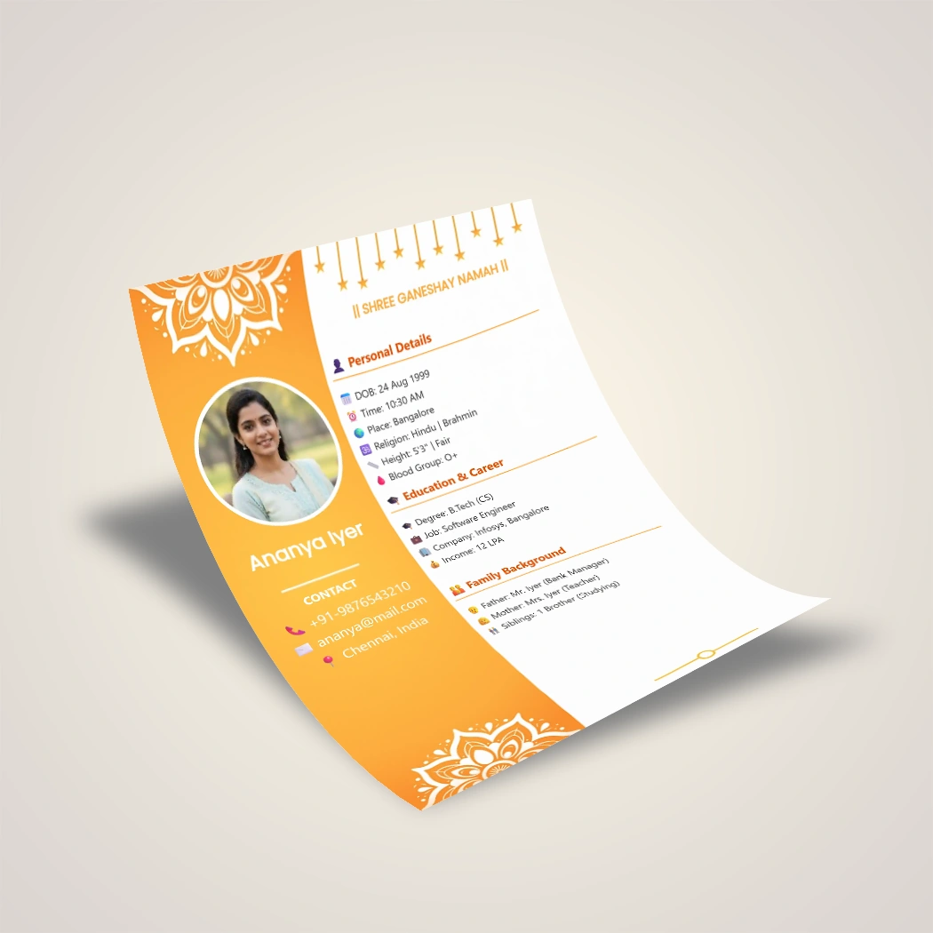 Our collection serves both prospective grooms and brides. The formats are gender-neutral and focus on the individual's achievements. By using our Buddhist marriage biodata templates, you ensure that your profile is viewed with the dignity and seriousness it deserves. Start your journey towards a happy married life today by choosing the perfect design.